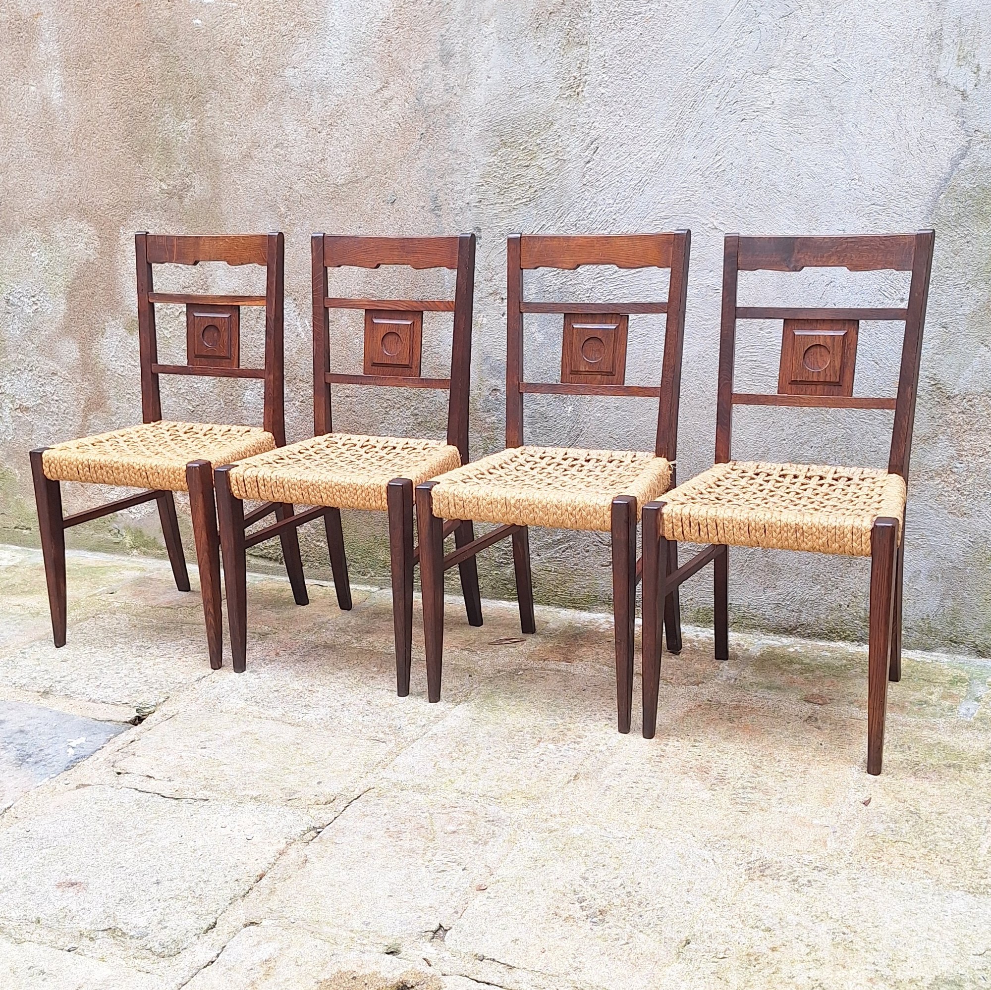 Loy de 4 chaises en chêne et cordes par Audoux et Minnet