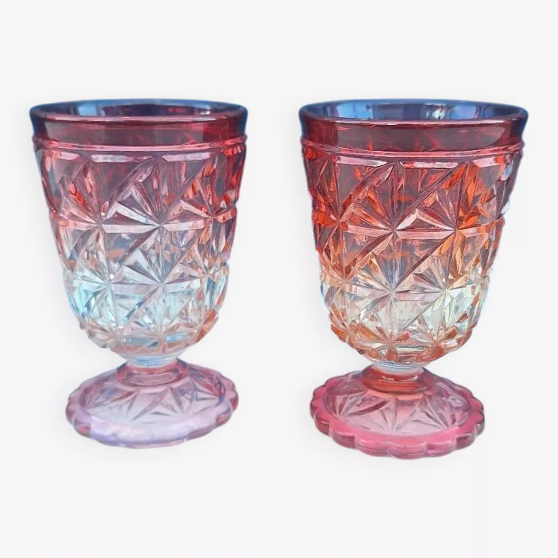 Set de 2 verres a eau en cristal taillé au couleurs rouge/rose dégradées.