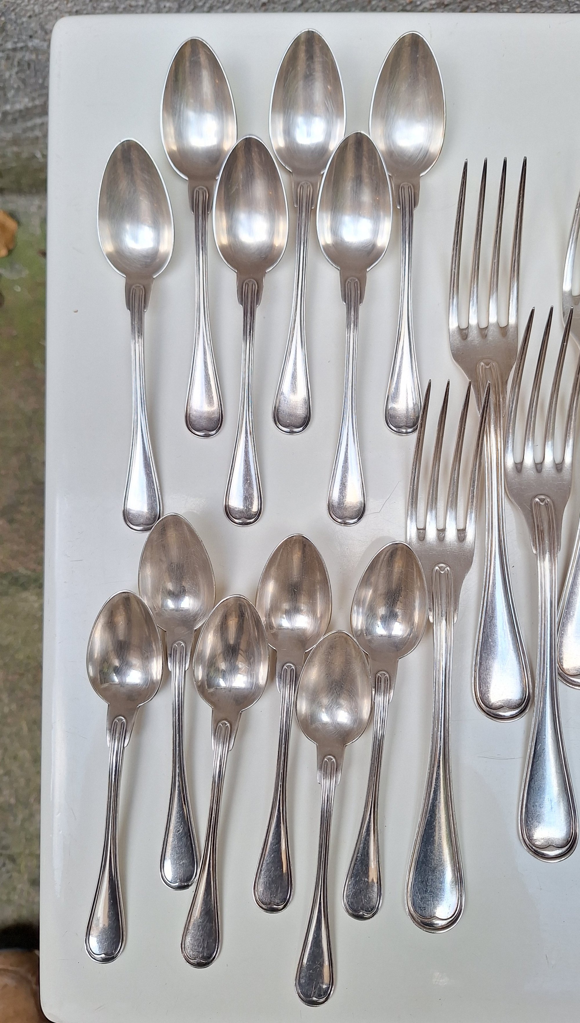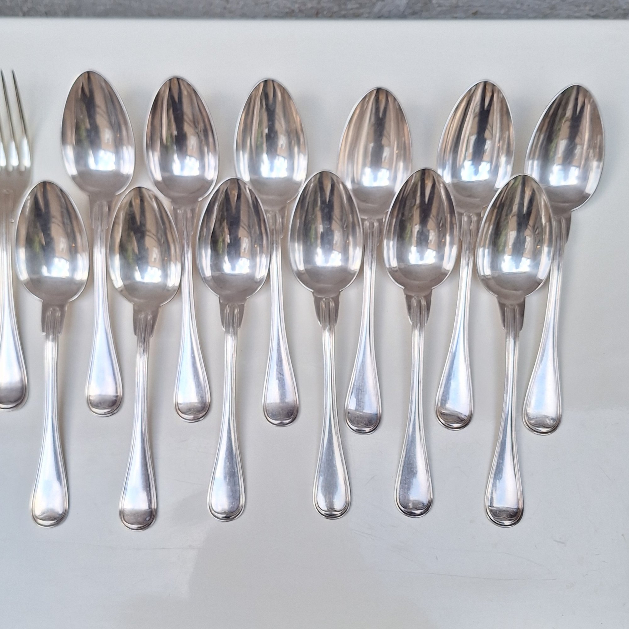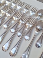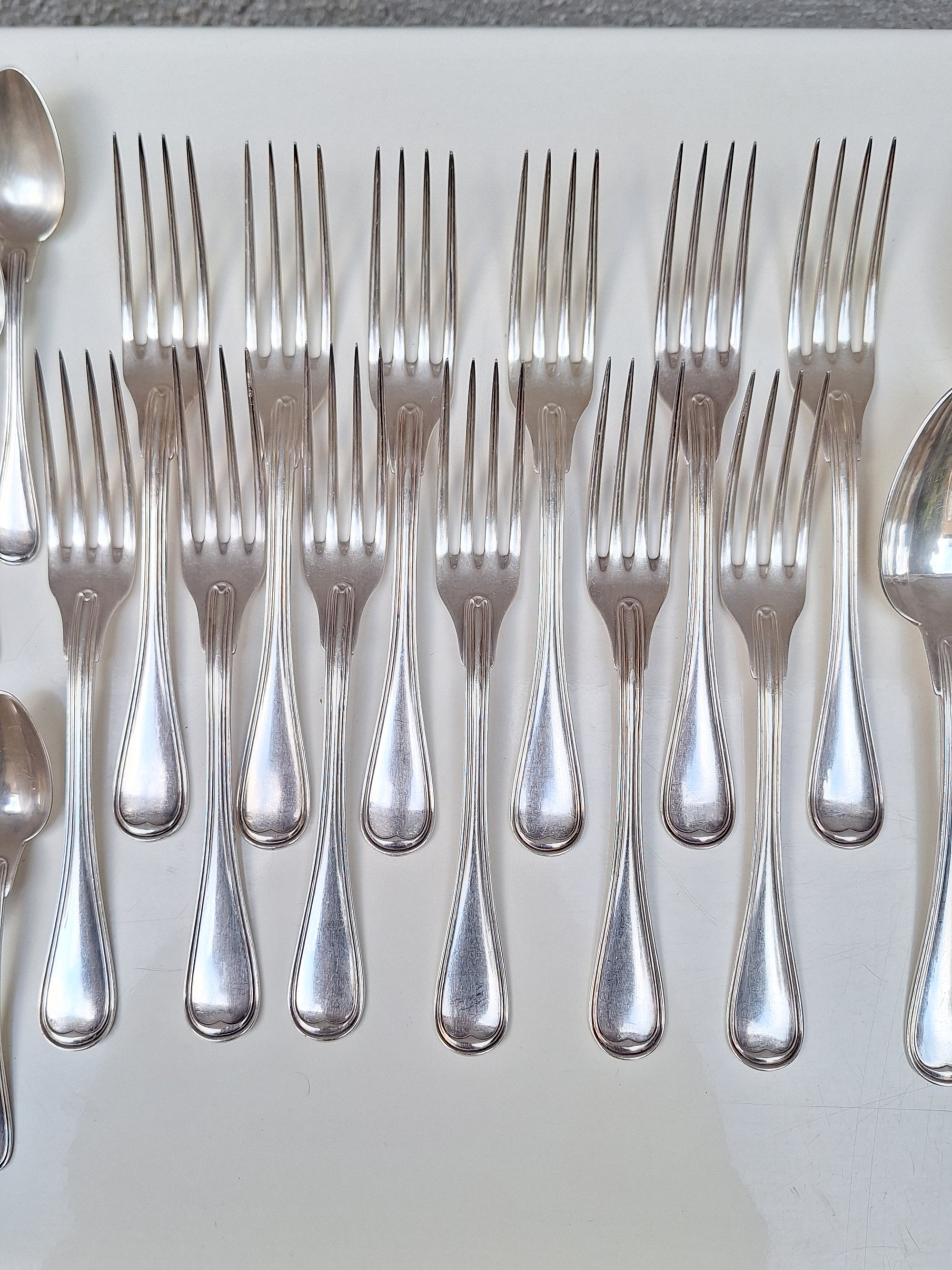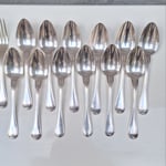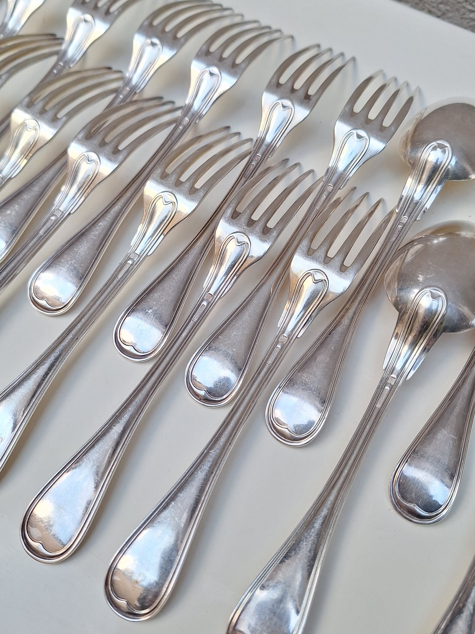 Lot de 12 fourchettes, 12 cuillères à soupe et 12 petites cuillères.